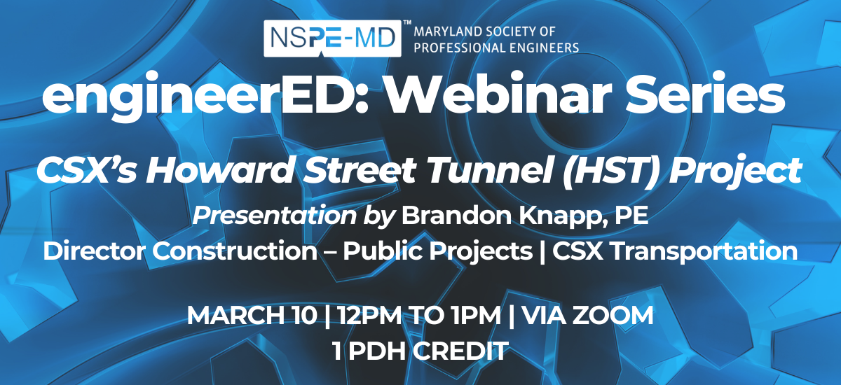 Join MDSPE for a 1 hour, 1PDH Credit Webinar – CSX’s Howard Street Tunnel (HST) Project